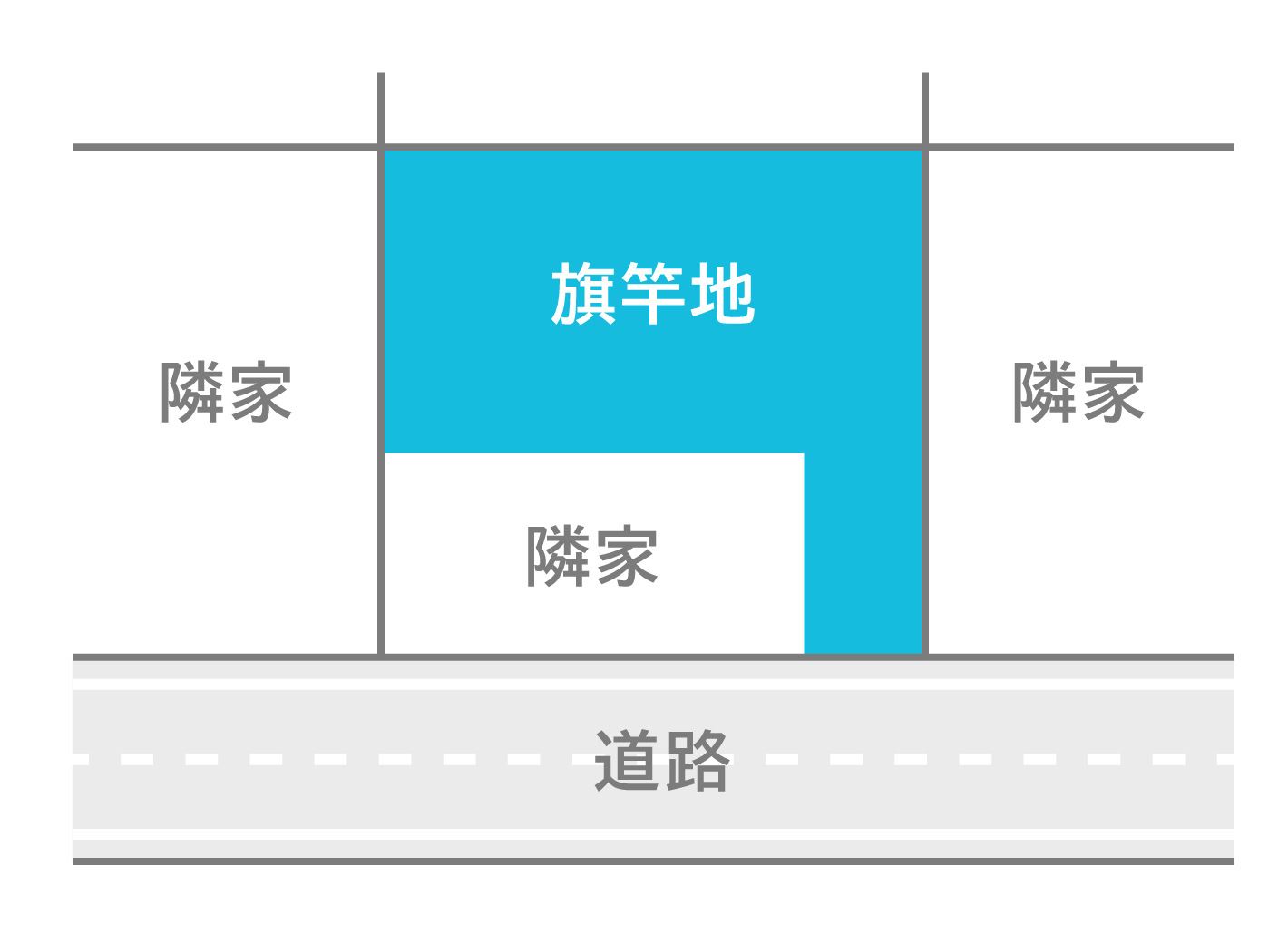 また、旗竿地は別名「敷延(しきえん)」とも呼ばれています。狭い通路部分を挟んで宅地が奥に位置しており、その形状から土地価格が抑えられる一方で、設計や生活に工夫が必要な土地でもあります。